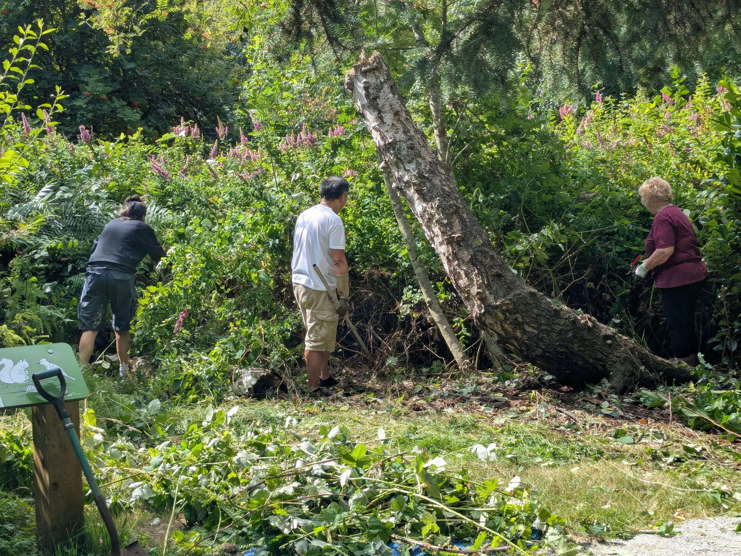 We had a lovely weekend working with Richmond Garden Club to remove a bunch of invasive blackberry that had taken over an area of Paulik Park! I work primarily with invasive rather than native plants because native plants are still used by the Indigenous people on whose homelands we live for food, medicines, and in other important cultural practices. By contrast invasives are plentiful and people are always trying to remove and manage them, which clears space for native plants to thrive.